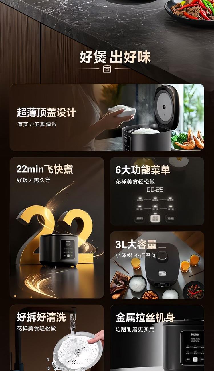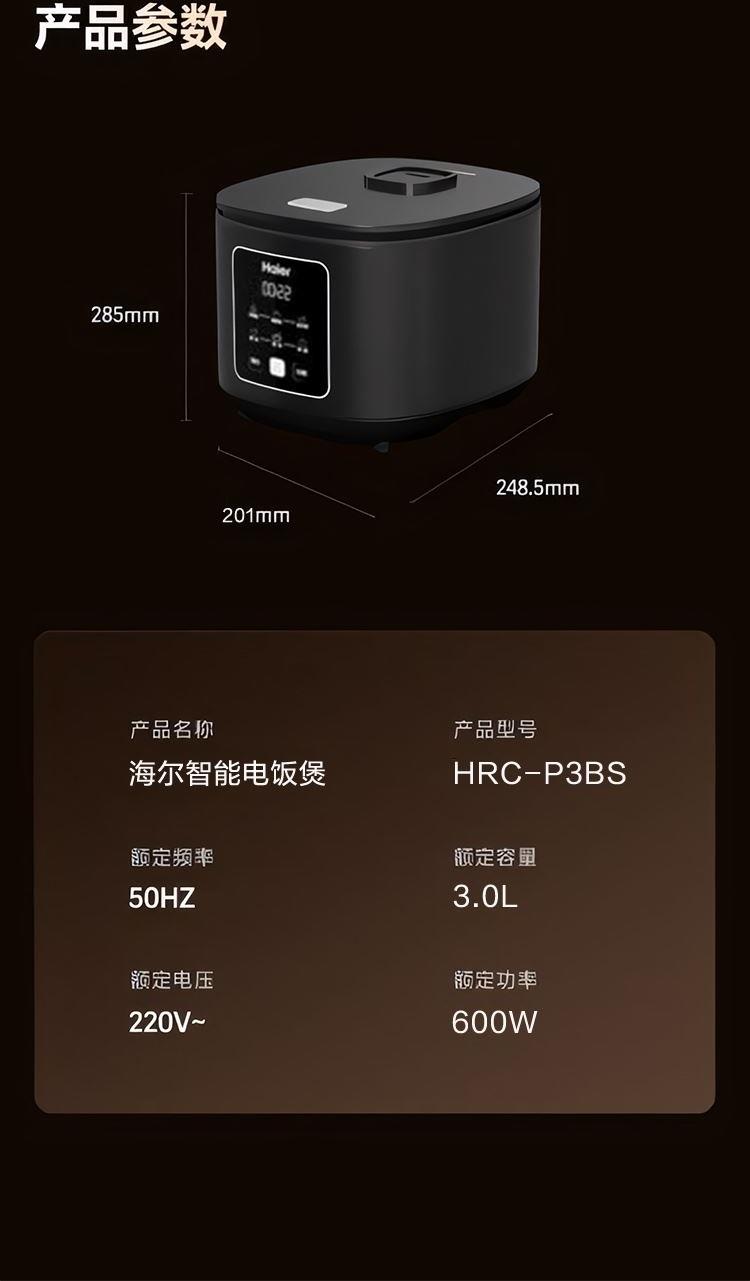 海爾智能3L纖薄智巧電飯煲HRC-P3BS