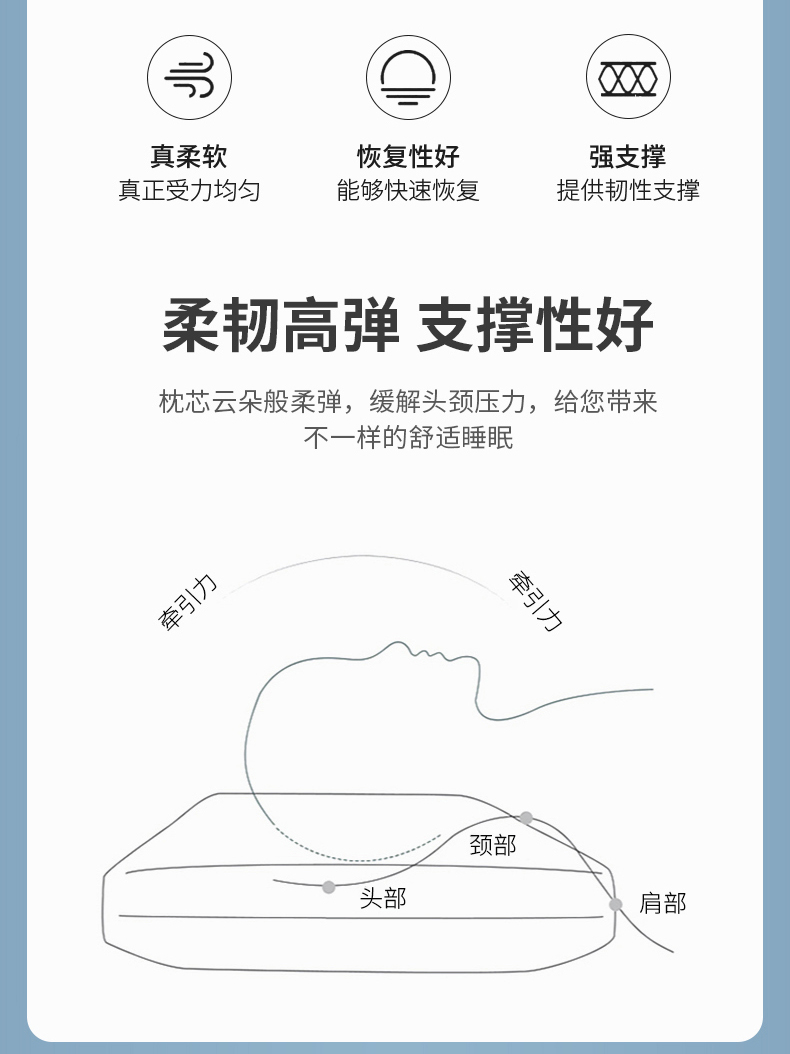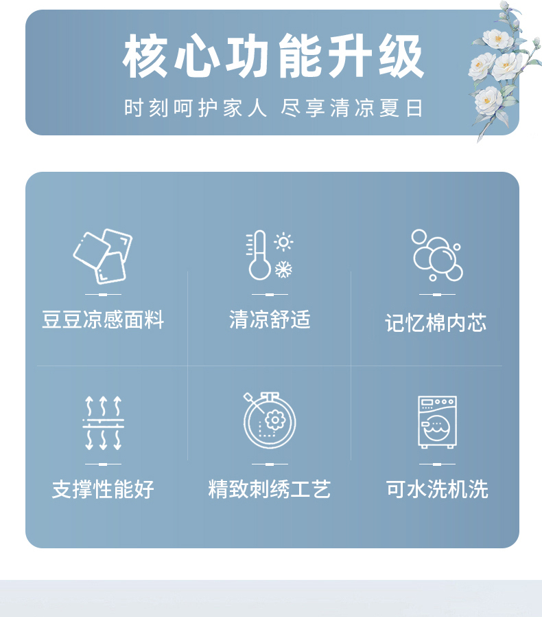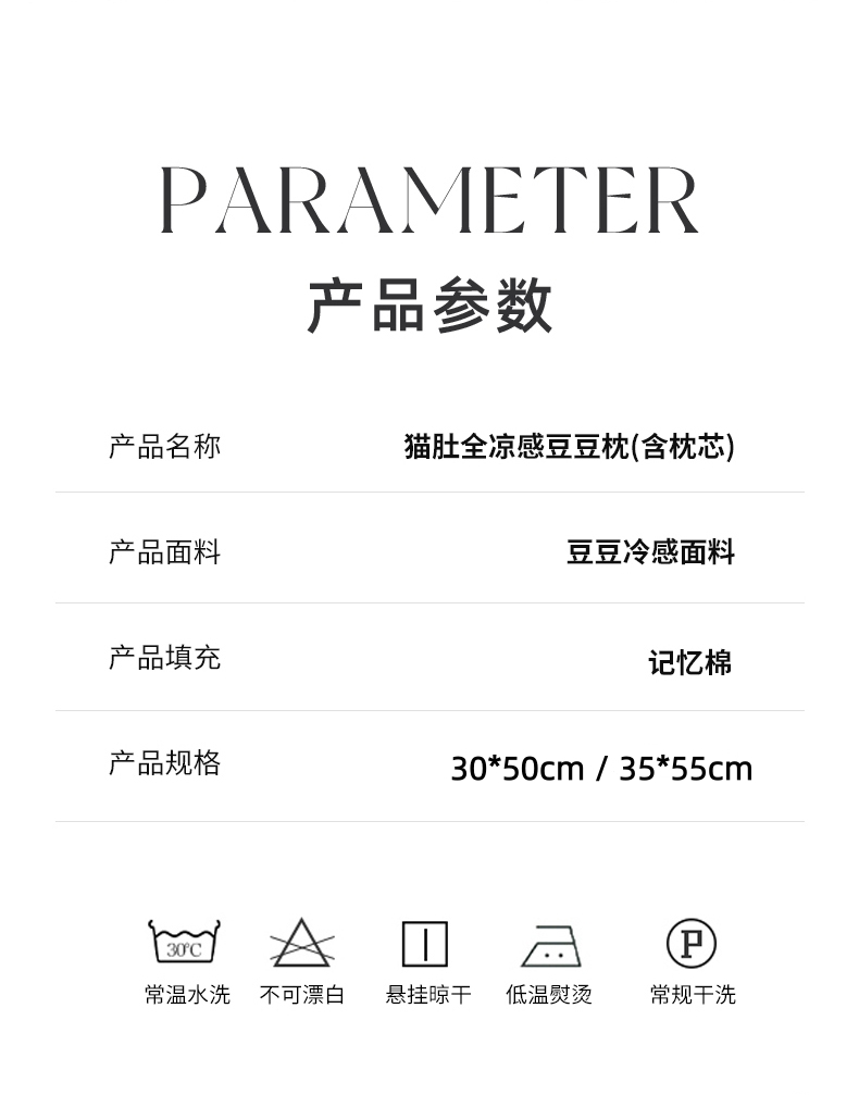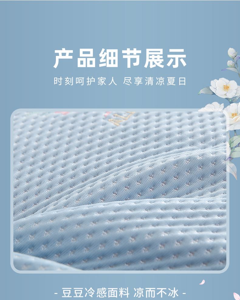 貓肚記憶棉內(nèi)芯,軟萌支撐采用貓肚記憶棉內(nèi)芯,觸感柔軟如貓咪肚皮,提供恰到好處的支撐力,有效緩解頸椎壓力,提升睡眠質(zhì)量。豆豆涼感面料,清涼一整晚創(chuàng)新豆豆涼感面料,接觸瞬間體感降溫,涼感清爽不刺骨,告別夏日悶熱,整夜舒適好眠。出色支撐性能,頸椎友好記憶棉內(nèi)芯具備良好的回彈性和支撐性,能夠貼合頸部曲線,提供均勻支撐,適合各種睡姿,保護(hù)頸椎健康。精致刺繡工藝,顏值擔(dān)當(dāng)表面精致刺繡裝飾,細(xì)節(jié)處彰顯品質(zhì)感,為臥室增添一抹可愛,讓睡眠空間更具溫馨氛圍