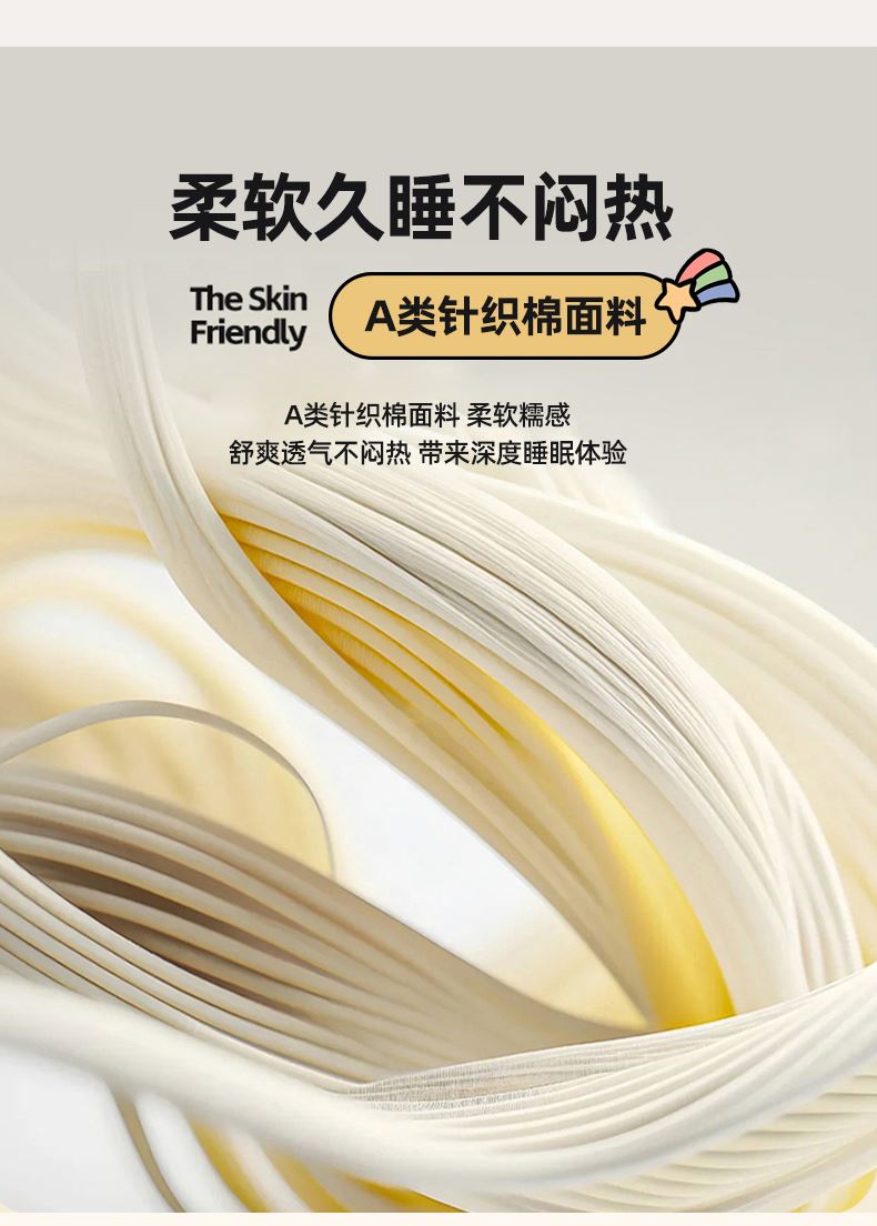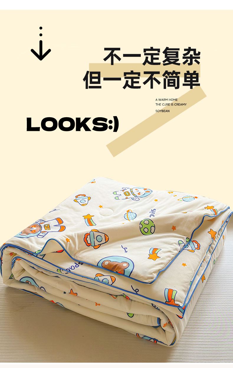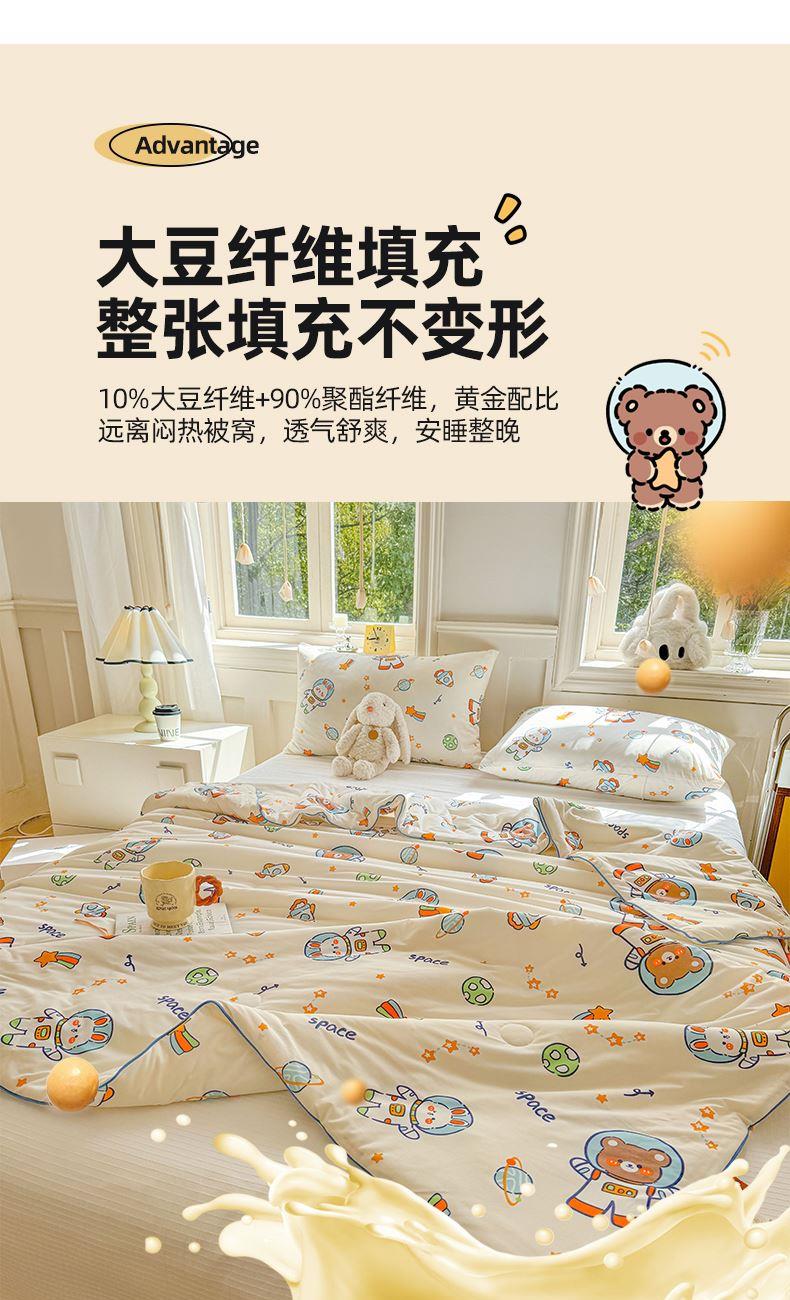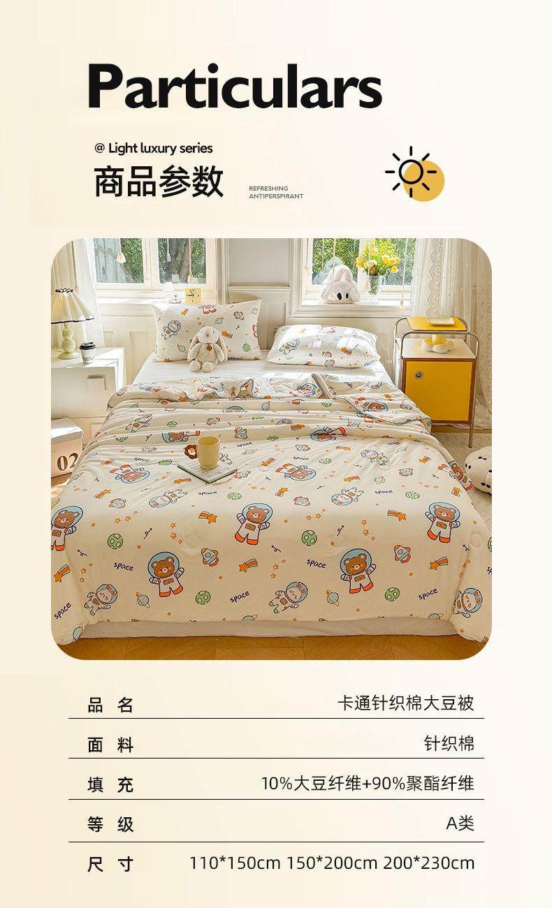 軟糯針織棉,裸睡級親膚甄選高彈針織棉面料,觸感如云朵般軟糯,透氣不悶汗,涼而不冰,夏天裹著它就像陷進溫柔懷抱,裸睡也超舒服。大豆纖維填充,輕盈又透氣填充優(yōu)質(zhì)大豆纖維,蓬松度高、回彈性好,輕盈不壓身,吸濕透氣,告別悶熱黏膩,夏夜也能清清爽爽睡到天亮。