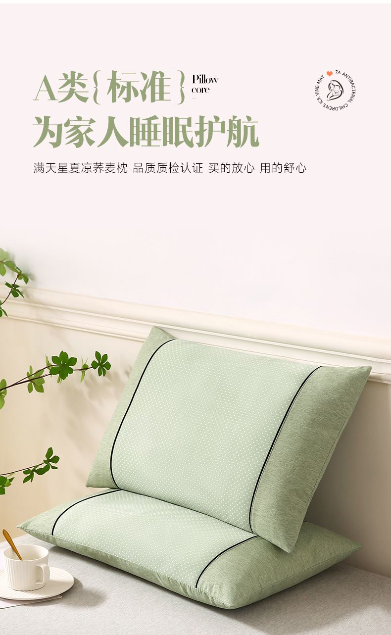 天然蕎麥芯,透氣舒爽內(nèi)部填充優(yōu)質(zhì)蕎麥殼,天然環(huán)保,透氣性佳,能夠有效調(diào)節(jié)枕頭溫度,保持頭部干爽,夏日睡眠更舒適。PE 涼感面料,清涼黑科技采用創(chuàng)新 PE 涼感面料,接觸瞬間體感降溫,涼感清爽不刺骨,告別夏日悶熱,整夜舒適好眠。滿天星印花設(shè)計(jì),顏值擔(dān)當(dāng)清新滿天星印花圖案,簡(jiǎn)約而不失精致,為臥室增添一抹自然氣息,讓睡眠空間更具溫馨氛圍。
