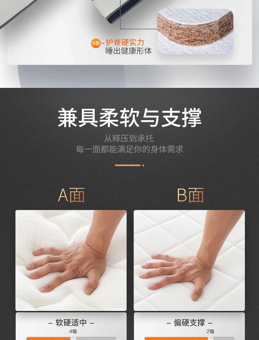 4.雙面可睡,睡感隨心:A面柔軟貼合,B面護(hù)脊承托,無(wú)論是貼合感還是支撐感,都是可以滿足。