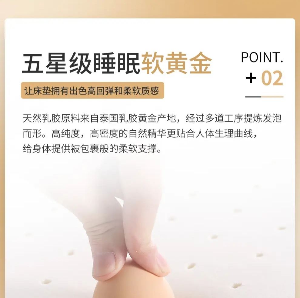 2.柔韌高彈,透氣散熱:主材采用進(jìn)口天然乳膠和納米竹炭海綿,飽滿厚實(shí)、彈性優(yōu)異,自動(dòng)貼合不同睡姿,并且柔軟透氣,能及時(shí)散發(fā)人體熱量