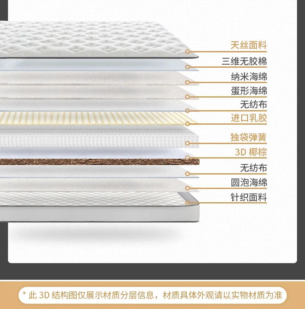 核心材質(zhì):進(jìn)口天然乳膠、3D椰棕