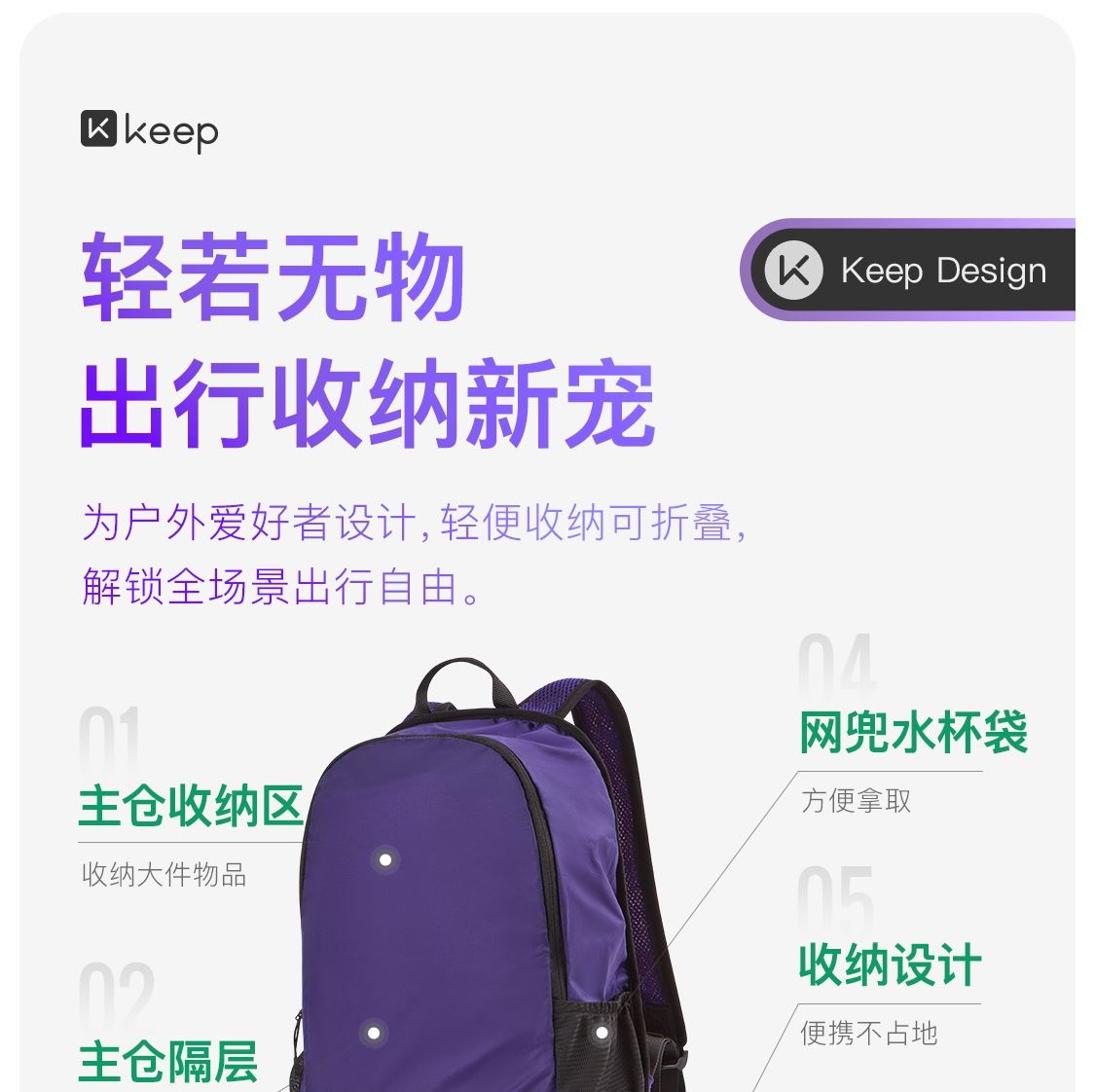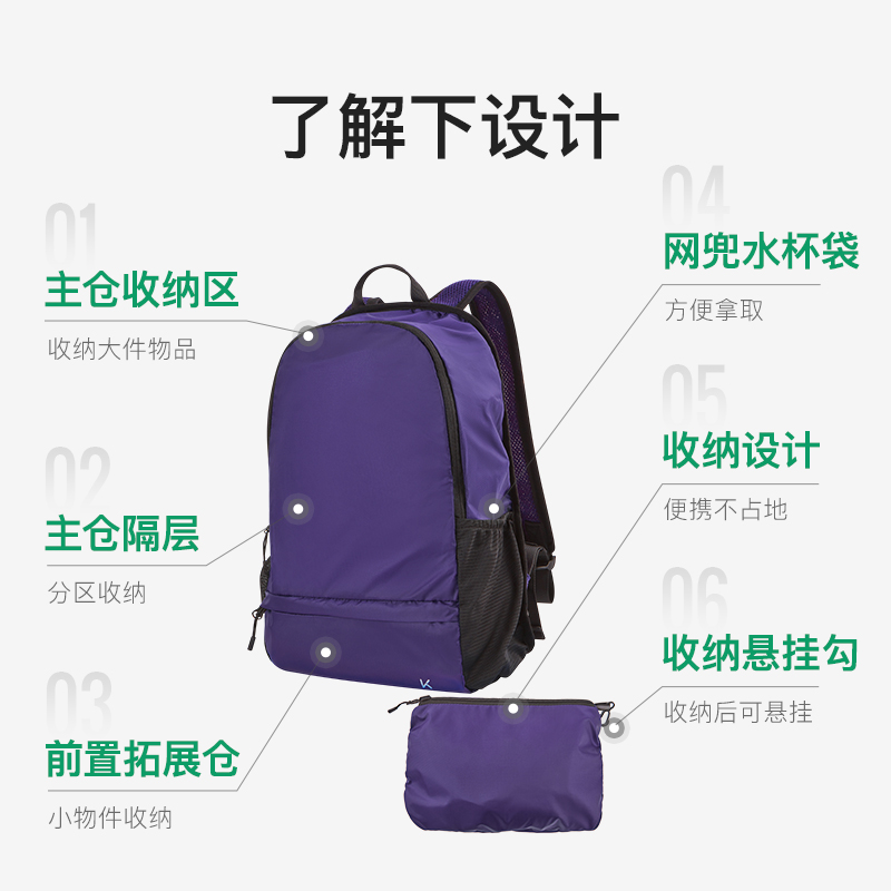 Keep可折疊輕量雙肩背包9L超輕152g黑色/灰色/紫色 Keep可折疊輕量雙肩背包9L超輕152g黑色/灰色/紫色