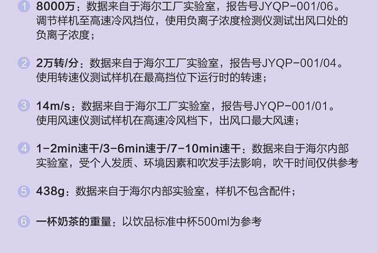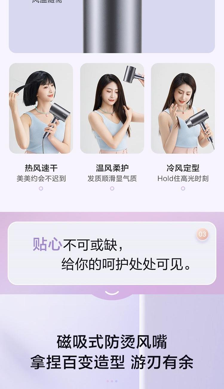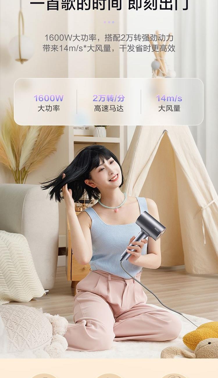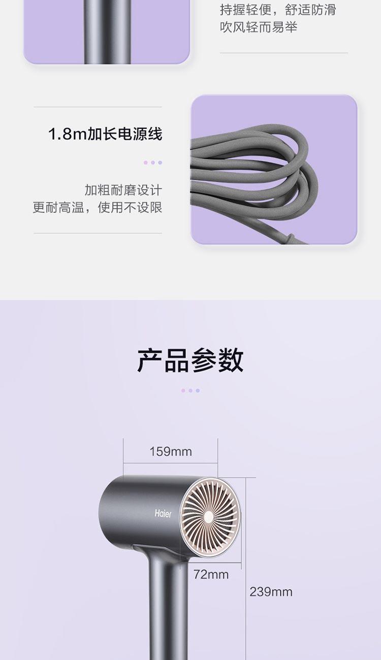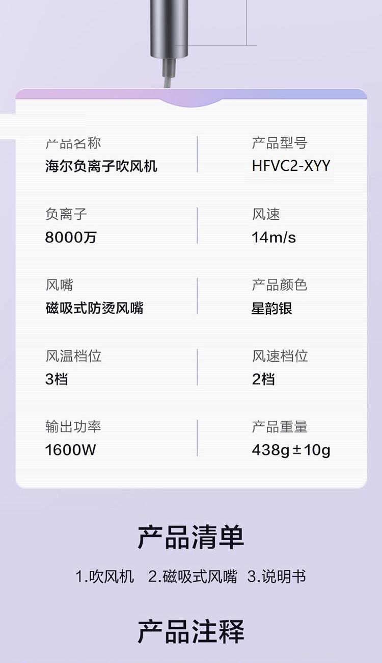 海爾負離子磁吸風嘴高速吹風機多擋位風速HFVC2-XYY