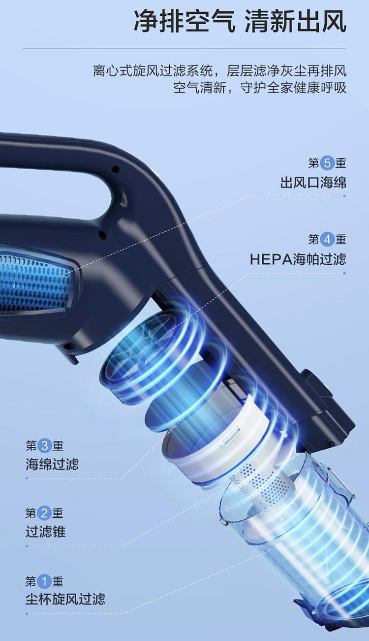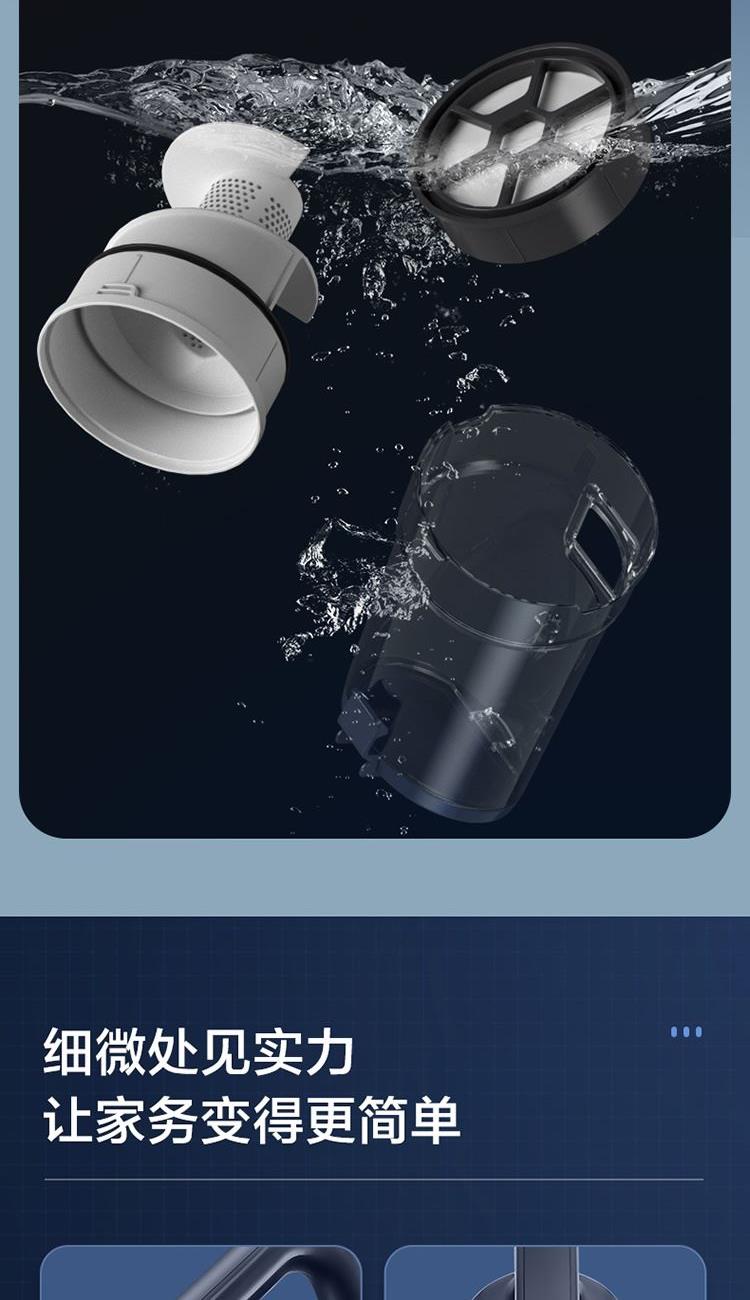 3、 0.5L大容量塵杯,濾網(wǎng)濾芯等可水洗,重復(fù)使用
