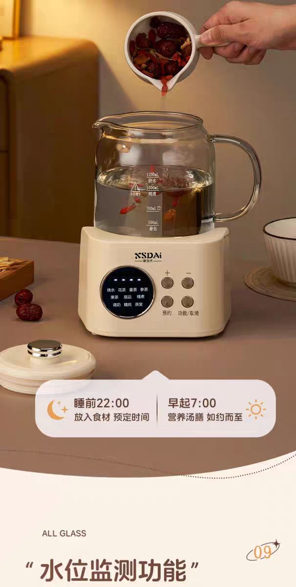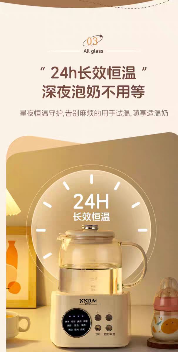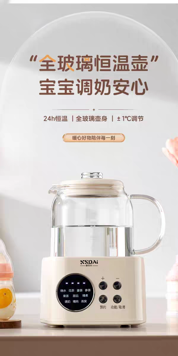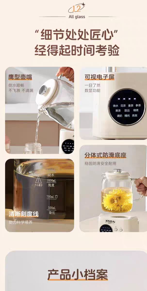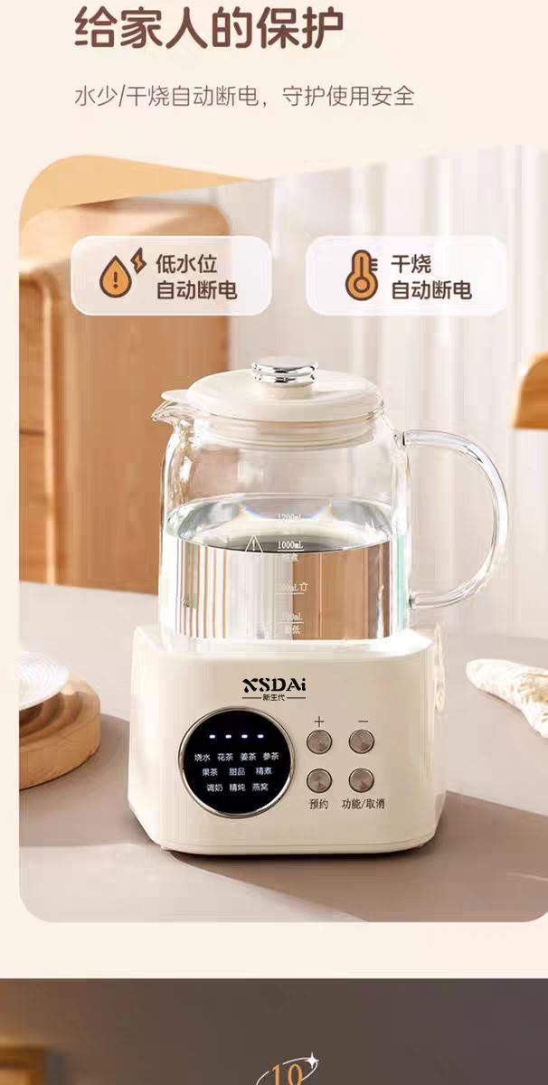 5、環(huán)保分離式加熱,高硼玻璃水壺,