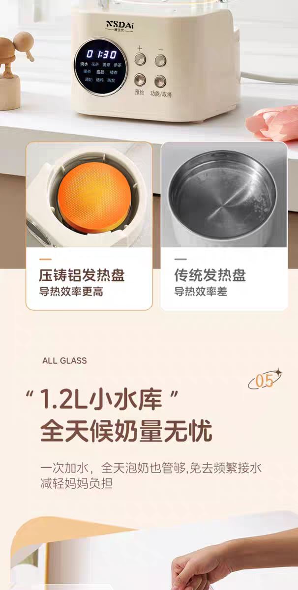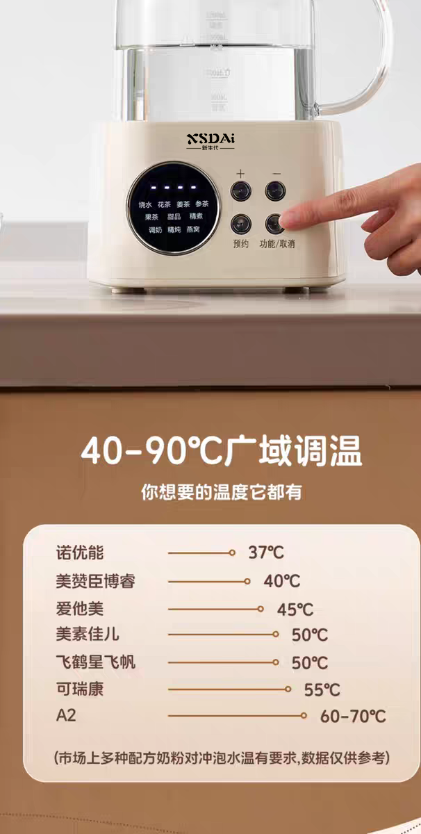 2、優(yōu)質(zhì)溫控智能防干燒,可測(cè)水提杯自動(dòng)停止加熱, 測(cè)溫雙顯示。